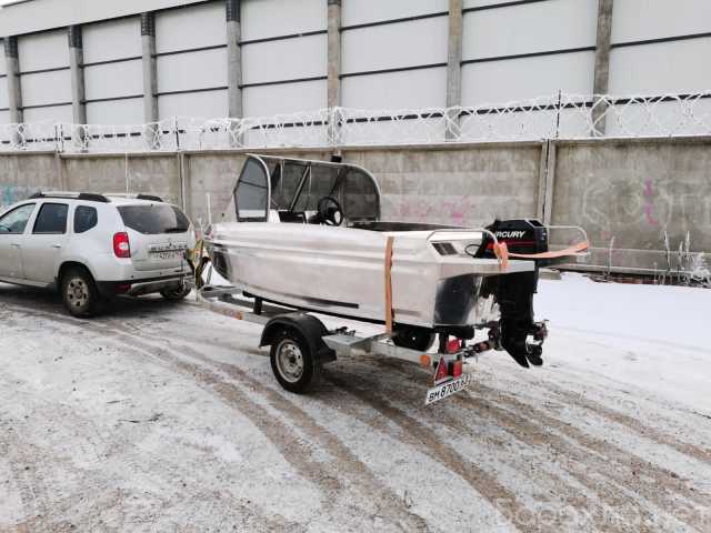 Размерения: длина - 3.9 м, длина габаритная - 4.45 м, ширина - 1.7-1.85 м, высота борта - 0.83 м, толщина дна - 3 мм, толщина борта - 3 мм, мощность мотора - до 60 л.с., материал - алюминий АМГ5.